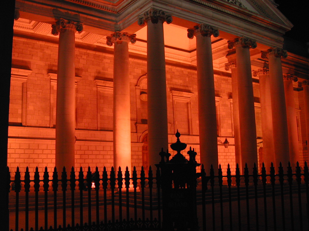The Bank of Ireland at night.