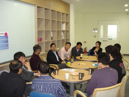 Harry and Ernst in the Coffee Lounge of the Computational Metallurgy Laboratory |
