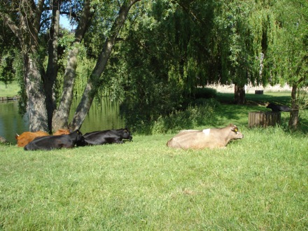 Still cycling, cows on the Common in front of Darwin |