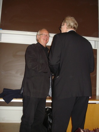 On the left is Professor Hans-Olof Andren of the Applied Physics Department, Chalmers University. |