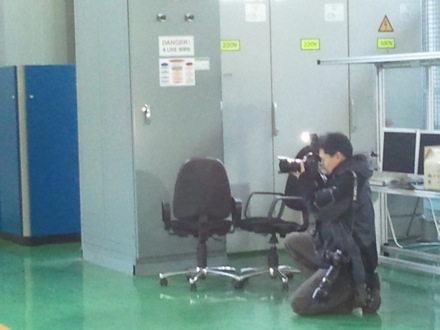 These photographs by You Young Song. Min Sung holds the remote flash while Yeon-Je Jung phtographs. Ryu arrives to explain what this equipment actually does. |