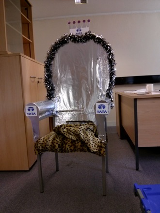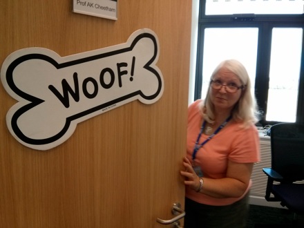 Anita Bailey decorates Tony Cheetham's office in his absence. |