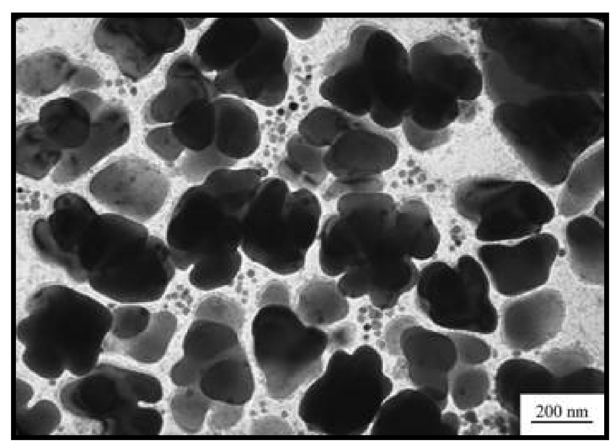 However, mechanical alloying is a very difficult process, so such alloys have limited applications. A transmission electron micrograph showing the oxide dispersion in a mechanically-alloyed nickel based superalloy is shown below.