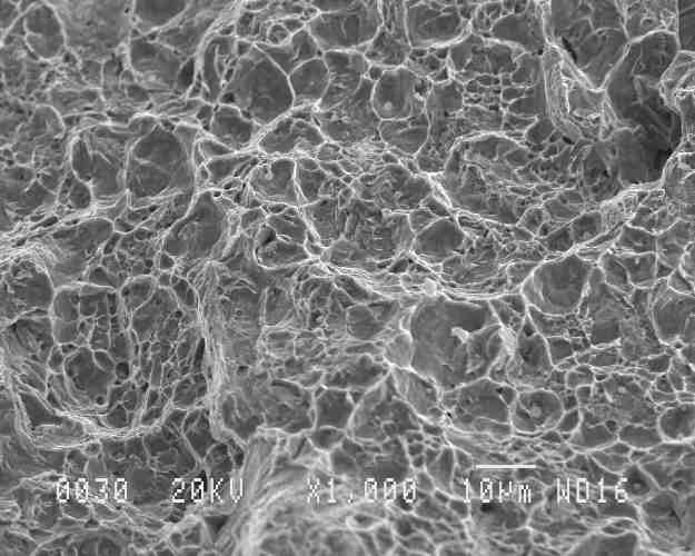 Fractograph of delta-TRIP steel, as cast, tensile tested at ambient temperature.