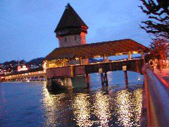 The wooden bridge in Lucern at night. |