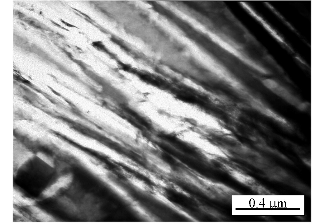 Fe-0.98C-1.46Si-1.89Mn-0.26Mo-1.26Cr-0.09V wt% Austenitised at 1000°C for 15 min. isothermally transformed at 200°C for 4 days.
