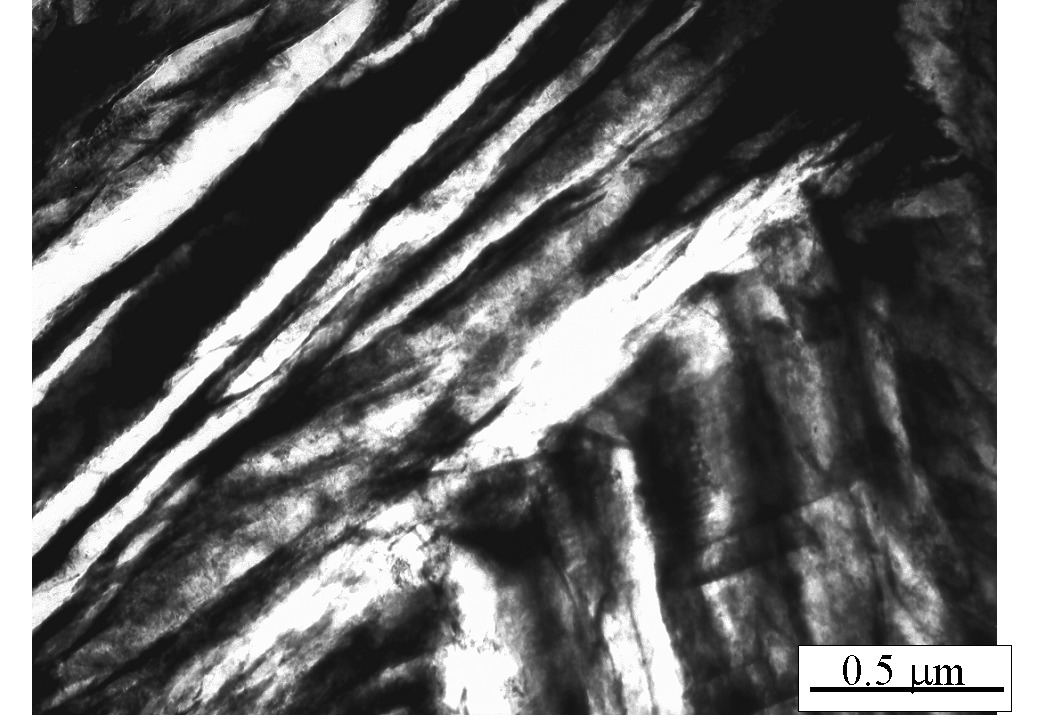Fe-0.79C-1.56Si-1.98Mn-0.24Mo-1.01Cr-1.51Co-1.01Al wt% Austenitised at 900°C for 30 min. isothermally transformed at 250°C for 10 h.
