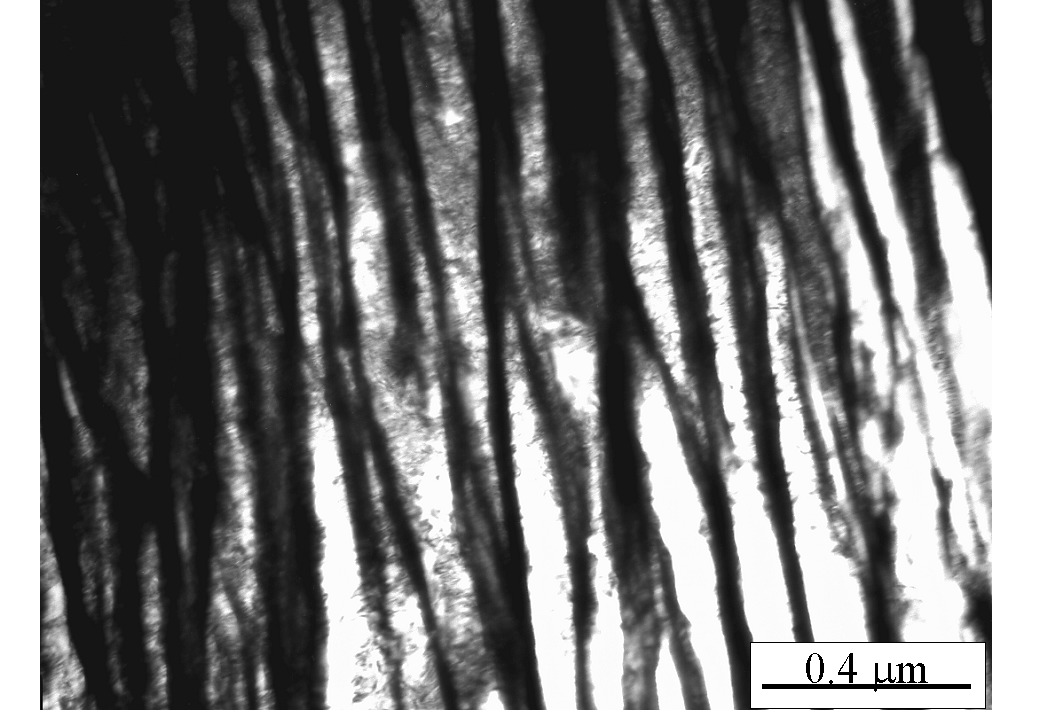 Fe-0.79C-1.56Si-1.98Mn-0.24Mo-1.01Cr-1.51Co-1.01Al wt% Austenitised at 900°C for 30 min. isothermally transformed at 300°C for 8 h.