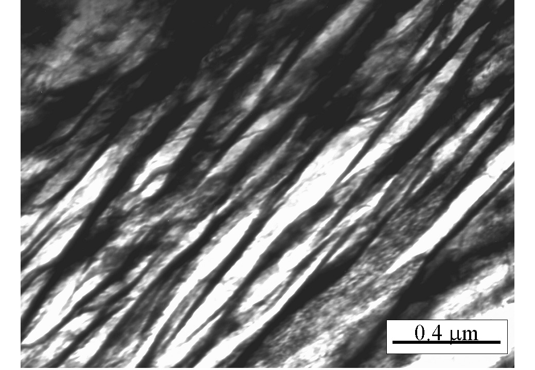 Fe-0.79C-1.56Si-1.98Mn-0.24Mo-1.01Cr-1.51Co-1.01Al wt% Austenitised at 900°C for 30 min. isothermally transformed at 300°C for 8 h.