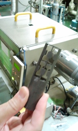 This is a small, home made, thermomechanical simulator for the minature tensile tests. The strain is measured using a laser.