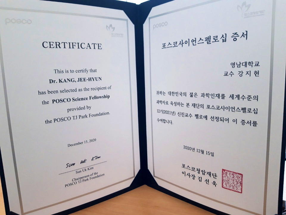 Jee-Hyun Kang awarded the prestigious POSCO Science Fellowship |