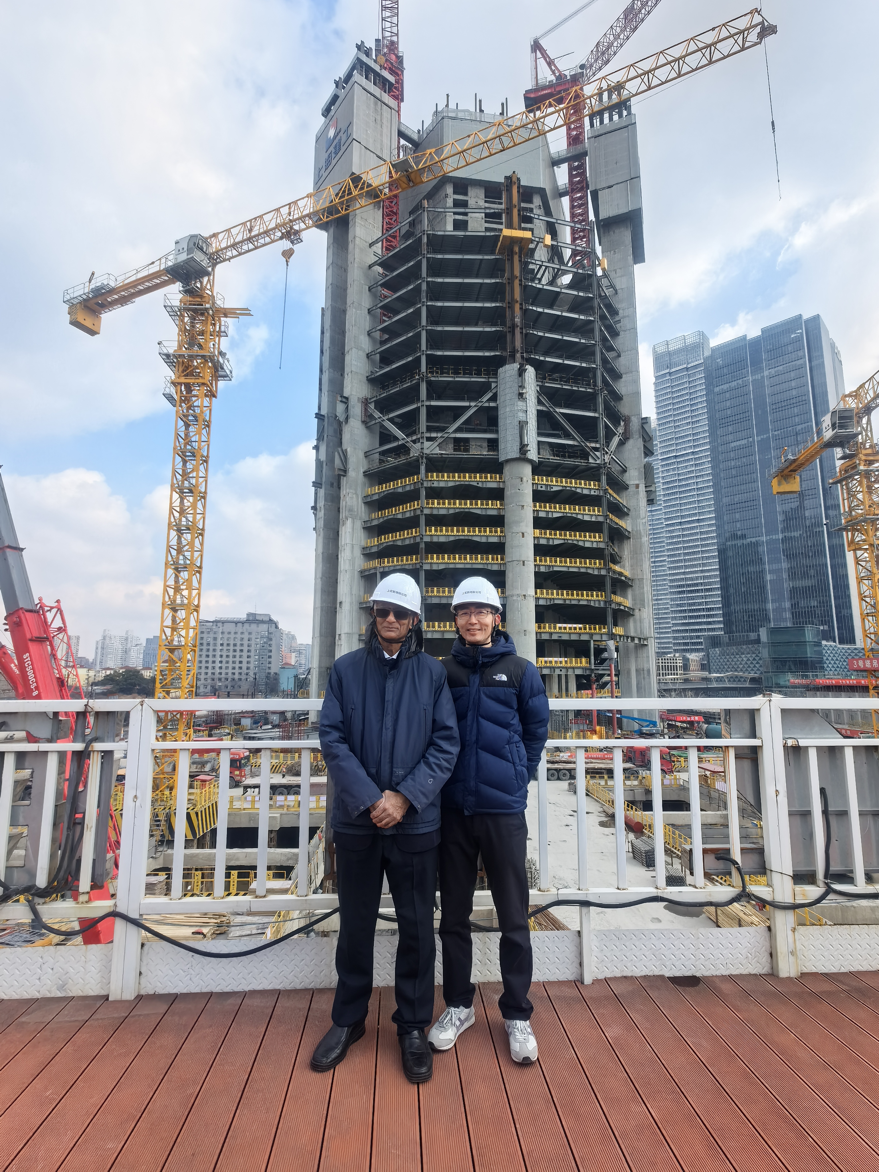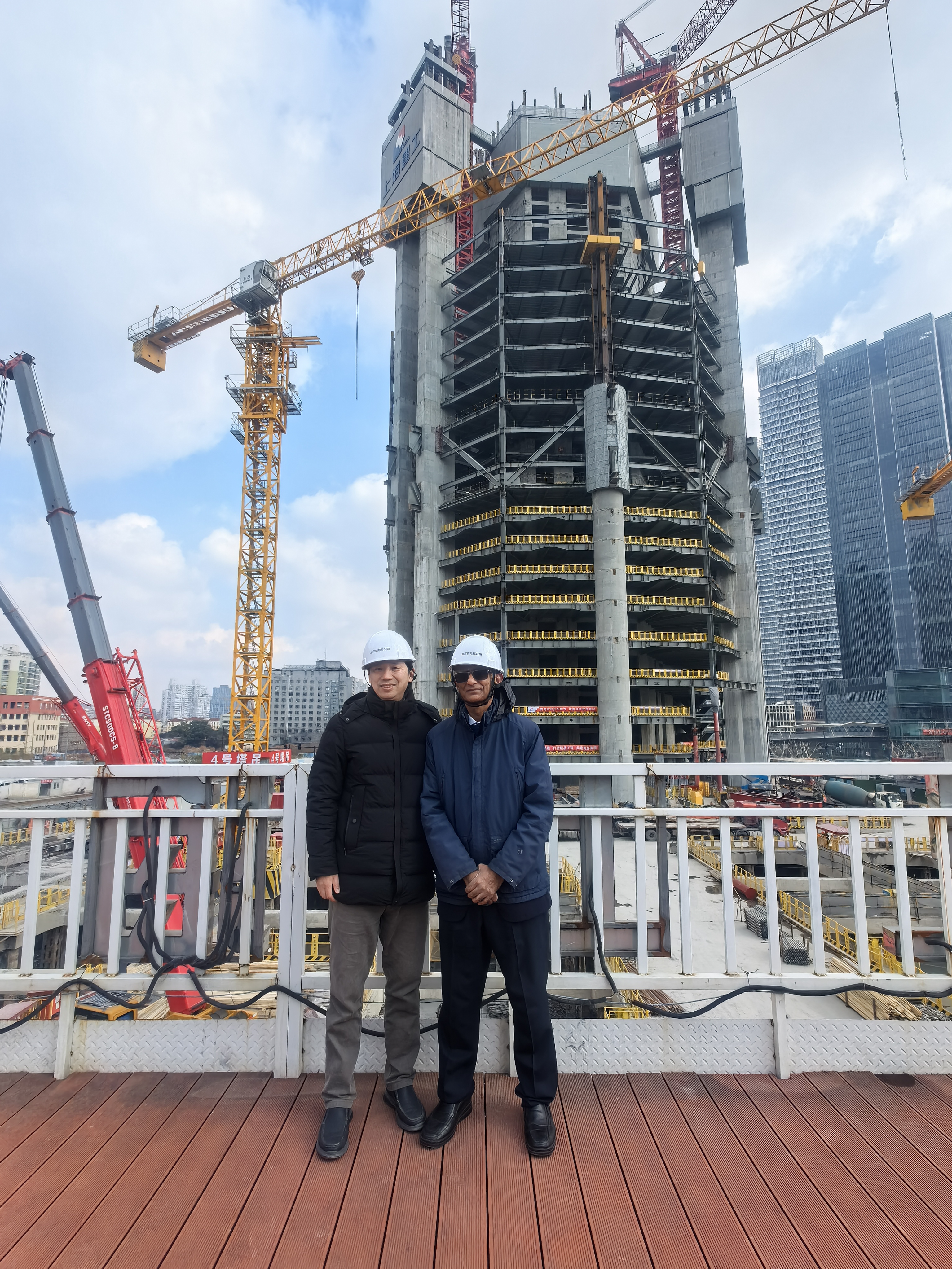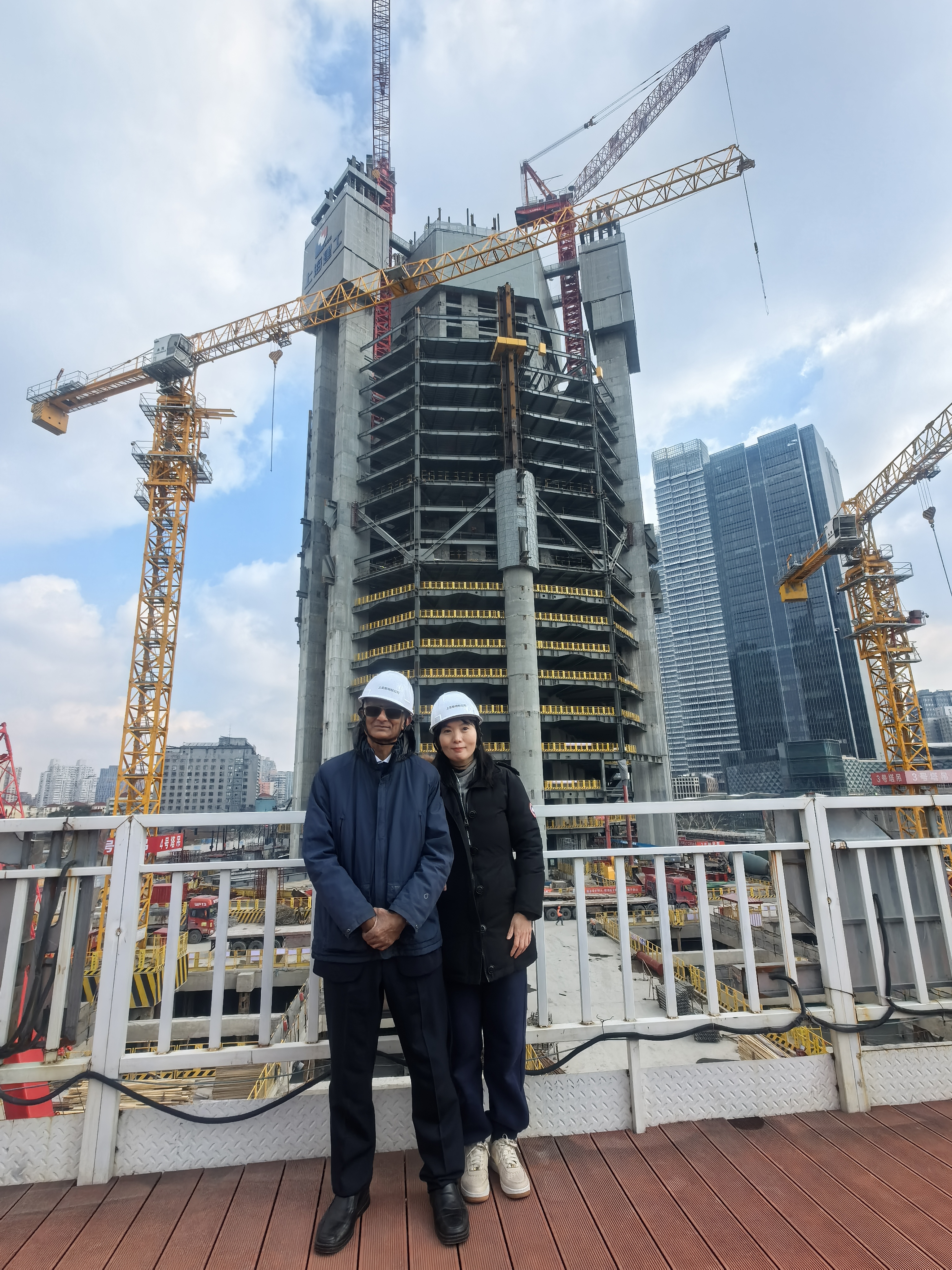 Visited two construction sites. The Opera house has a stair case that looks like a Chinese fan, and required considerable effort to avoid resonance when people walk. In addition to the composite action of the steel reinforcement and concrete, there are six tuned-dampers that eliminate resonance when people walk with a step frequency that is typicallly 1.5-2 Hz. The super tower has some incredible engineering to avoid seismic damage and flexure.