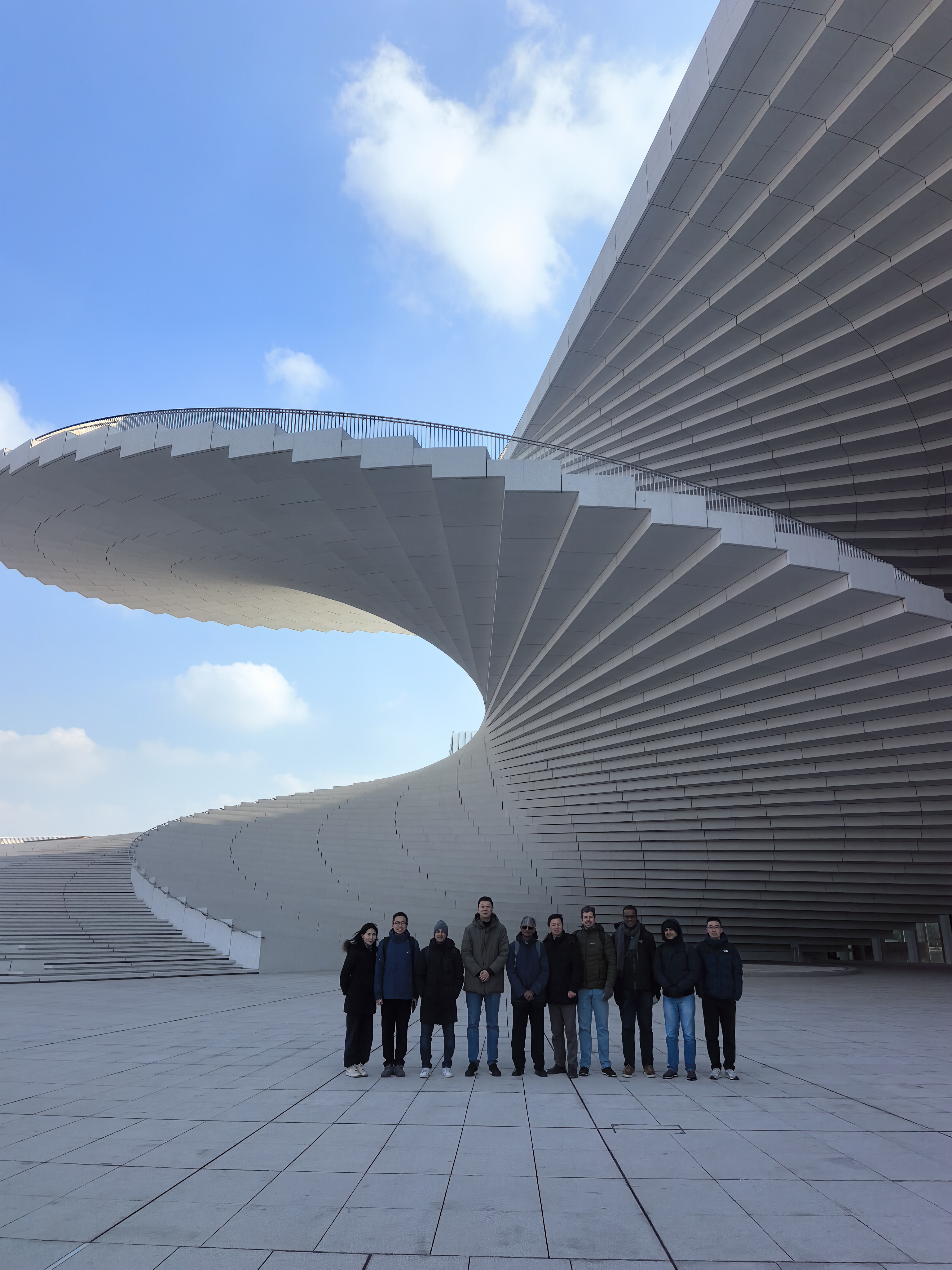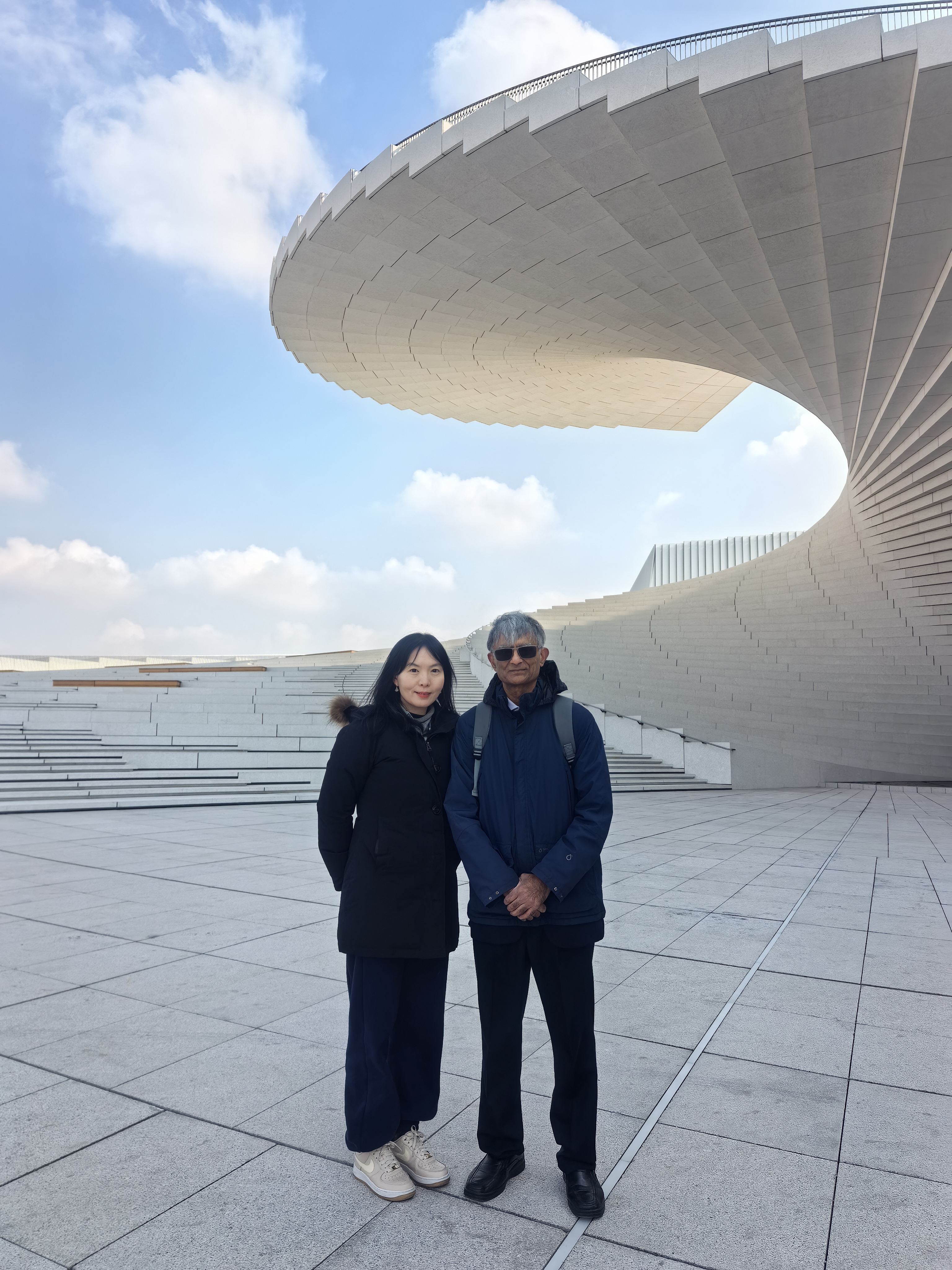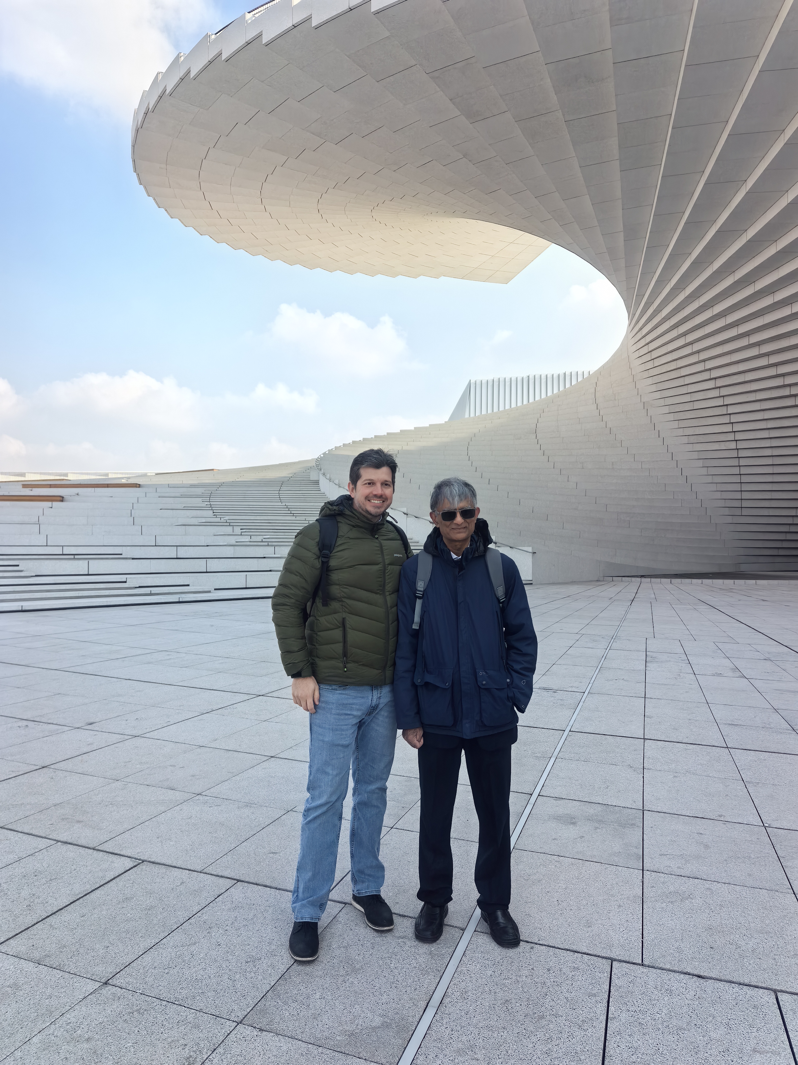 Visited two construction sites. The Opera house has a stair case that looks like a Chinese fan, and required considerable effort to avoid resonance when people walk. In addition to the composite action of the steel reinforcement and concrete, there are six tuned-dampers that eliminate resonance when people walk with a step frequency that is typicallly 1.5-2 Hz. The super tower has some incredible engineering to avoid seismic damage and flexure.
